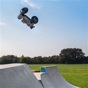 You need plenty of power for that level of stunt action. That's why ARRMA® has outfitted the new OUTCAST™ Stunt Truck with a potent, 6S-capable brushless system including a 2050Kv motor paired with the BLX185 ESC (featuring IC5™ connectors compatible with standard EC5™ connectors). Bashing is a "go" even through mud and snow, thanks to waterproof electronics. Add your favorite 4S or 6S LiPo battery and view the OUTCAST™ execute radical stunts!