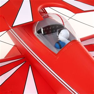 Authentic Detail Besides the careful attention to every outline, scale detail includes the look of fabric covered construction, plus detents highlighting where panels and hatches are found on the full-size. The characteristic wedge-shape fuselage is crowned with a scale spinner in a shape often found on high-powered versions of the Pitts bipe while the cockpit area is neatly appointed with an enclosed canopy and painted pilot figure. Optional-use flying wires for added scale looks are also included.
