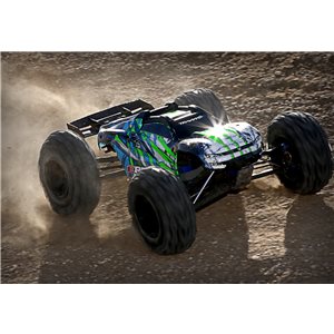 Specs Length: 23.05 inches (585mm) Width: 18.32 inches (465mm) Ground Clearance: 2.9 inches (73mm) Weight: 11.2lb (5.08kg) Height: 8.7 inches (221mm) Wheelbase: 14.94 inches (380mm) Front Shock Length: 3.42 inches (87mm) Rear Shock Length: 3.42 inches (87mm) Tires (pre-glued): 6.4 x 3.5 inches (162mm x 88mm) Wheels: 3.8 inches (97mm) Speed Control: Velineon® VXL-6s Motor (electric): 2200kV Transmission: Single speed Gear Pitch: 1.0 Metric pitch (Mod-1) Final Drive Ratio: 20.49:1 Differential Type: Sealed, 4-gear Center Differential Type: Sealed, 4-gear (20M weight oil) Chassis Structure / Material: Composite tub Brake Type: Electronic Drive System: Shaft driven 4WD Steering: Bellcrank Radio System: TQi™ 2-channel transmitter with 6533 TSM receiver Servo: Dual 2075 Top Speed (optional gearing): 70+ mph Skill Level: 3 Battery Compartment: 156mm x 50mm x 29mm