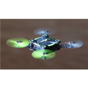 The Orbit FPV is a RTF (Ready-To-Fly) drone, so it comes factory-assembled out-of-the-box with nearly everything you need to begin your FPV experience. You'll get a nearly standard size 2.4GHz 4-channel transmitter, two 300mAh 1-cell LiPo batteries for extra flying time, a set of VR goggles, and a USB charger for the flight battery. Simply add 4 AA batteries for the transmitter (not included) and you'll be flying your maiden FPV flight within minutes of opening the box!