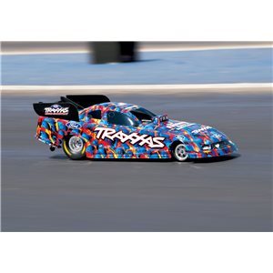 Off the track, the realism continues with the tilt-up licensed Ford Mustang body developed from the full size CAD drawings, tube style chassis, super-sticky belted slicks, and accurate detailing. Traxxas replicates the steel, welded-tube construction of full-size funny cars with a gleaming black-chrome chassis. The front latch eliminates body clips for fast access to the battery compartment. The full suspension system is engineered to give the Traxxas NHRA Funny Car the ability to handle the ruts and bumps of real world track surfaces. Combined with the Traxxas DTS-1 Drag Timing System (sold separately) and the Traxxas Link application and Traxxas drag racing becomes a full-on simulation with timing so accurate, races are won and lost by a millisecond. Only Traxxas could bring this level of intense racing competition and all-out fun together in such a tightly engineered package.