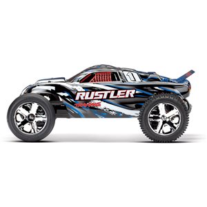The Traxxas Rustler has a winning formula for rugged, reliable fun that starts at just $169.99! The Rustler brings RC fun to a whole new level with faster speeds, innovative technology, and hobby-grade resilience for many years of fun. With a top speed of 35+mph*, Rustler rips off-road roost with its powerful Titan® 12-turn modified 550 motor and XL-5 Electronic Speed Control. Traxxas' special waterproof electronics enable Rustler to blast through puddles, cut through mud and shred snow for wild all-weather fun. Your RC adventures are limited only by your imagination. Step up to authentic Traxxas quality and performance and discover a whole new level of fun with the Traxxas Rustler!