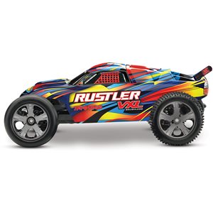 Rustler VXL combines Traxxas Stability Management® (TSM) and Velineon® extreme horsepower with the proven fun and resilience that made Rustler the number-1 selling electric stadium racer. The Velineon Brushless Power System introduces Rustler VXL to new heights with speeds of 70mph and beyond! Hardcore, wheel-standing acceleration totally blows everything else away. Rustler's low, broad stance offers razor-sharp handling and remarkable grip with TSM keeping you in firm control. Go on, rip full throttle! Rustler kicks up towering roosts of mud and its waterproof electronics guarantee that no adventure is out of reach, no matter how extreme!