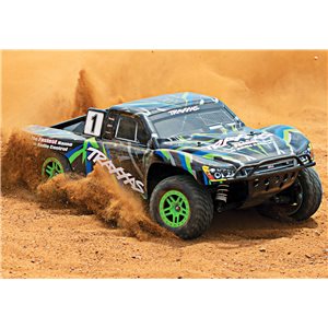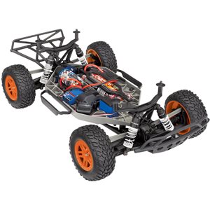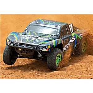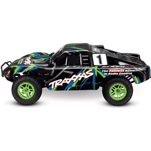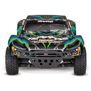 Specs Length: 22.36 Inches (568mm) Front Track: 11.65 Inches (296mm) Rear Track: 11.65 Inches (296mm) Center Ground Clearance: 2.83 Inches (72mm) Weight: 5.86lbs (2.66kg) Height (overall): 7.60 Inches (193mm) Wheelbase: 12.75 Inches (324mm) Shock Length: Long (front), XXLong (rear) Tires: Traxxas 2.2" Pre-Glued with Foam Inserts Tire Diameter: 4.31 Inches (109.5mm) (front and rear) Wheels (front/rear): 2.2" Split-Spoke, Green or Orange Beadlock Wheel Diameter: 2.2 Inches (56mm) Outer 3.0 Inches (76mm) Inner Speed Control Type: XL-5™ Electronic Speed Control Motor (electric): Titan® 12T 500 (12-turn) Overall Drive Ratio: 19.23 (stock, out-of-box) Differential Type: Hardened Steel Bevel, Sealed, Limited Slip Gear Pitch: 32 Chassis Structure/Material: Molded Tub / Nylon Composite Drive System: Shaft-Driven, Direct Drive 4WD Steering: Dual-Bellcrank with Integrated Servo Saver Radio System: TQ™ 2.4GHz (2-channel) Body: ProGraphix, Traxxas Slash Skill Level: 1 *Battery Tray Dimensions: 165mm x 49.5mm x 23mm, 25mm Included Charger: Traxxas 4-amp DC Peak Detecting Fast Charger Included Batteries: Traxxas 7-cell NiMH battery with iDTM Required Items: 4 "AA" Batteries (for transmitter)