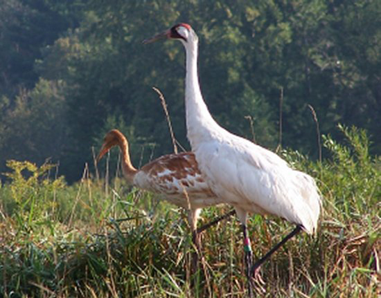 The parents and both chicks were together until September 12, 2006. Then the parents and this chick flew just across the refuge boundary to feed and forage while the other chick stayed behind on the refuge. See the banding codes for #211 and #217 and you'll be able to identify the parent in the photo. |