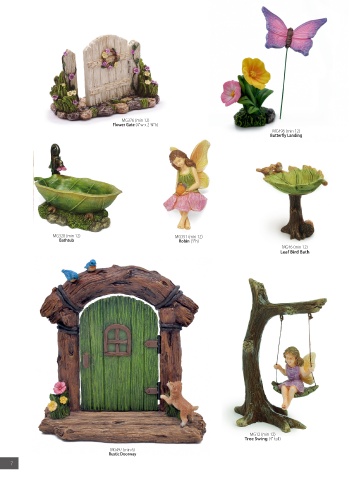 MG376 (min 12) Flower Gate (4"w x 2 3/4"h) MG496 (min 12) Butterfly Landing MG328 (min 12) MG351 (min 12) Bathtub Robin (3"h) MG46 (min 12) Leaf Bird Bath MG12 (min 12) Tree Swing (4" tall) MG497 (min 6) Rustic Doorway 7