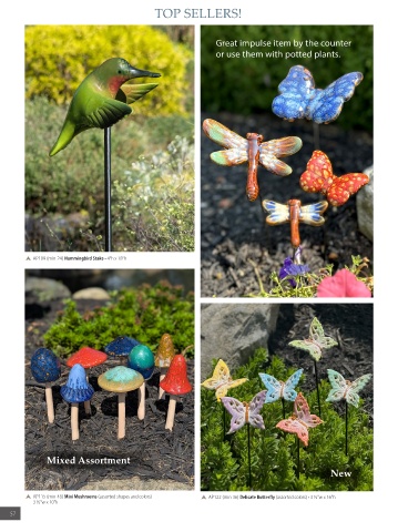 AP115 (min 48) Mini Mushrooms (assorted shapes and colors) AP122 (min 36) Delicate Butterfly (assorted colors) • 3 1/2"w x 16"h