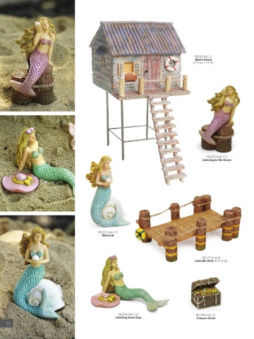 MG98 (min 2) Beach House (7 1/2"w x 11 1/2"h) MG293 (min 12) Listening to the Ocean MG232 (min 12) Mermaid MG175 (min 6) Lakeside Dock (6 1/2" long) MG294 (min 12) MG299 (min 12) Catching Some Rays Treasure Chest 37